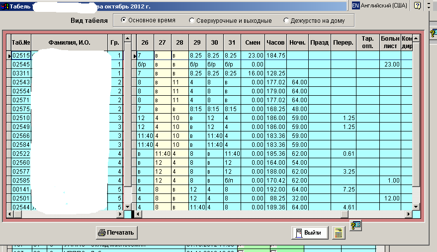 "Електронний табель" є розподіленою системою обліку робочого часу і виконаних робіт. Його користувачами є табельщики, майстри, керівники відділів та інші особи, відповідальні за облік робочого часу. Результати роботи "електронного табеля" є вхідними даними для програми розрахунку заробітної плати. Також до складу програми включено складання графіків відпусток - для більш точного розрахунку бюджету в АРМ ВПЗ.